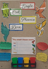 House points are earned for modelling positive behaviour and our school virtues anywhere outside of the classroom. Staff lookout for children during break and lunch times who play cooperatively and model our virtues anywhere and at any time around the school as well as during PE sessions. House points are recorded on the house point tally chart. House Captains collect the house points earned from each